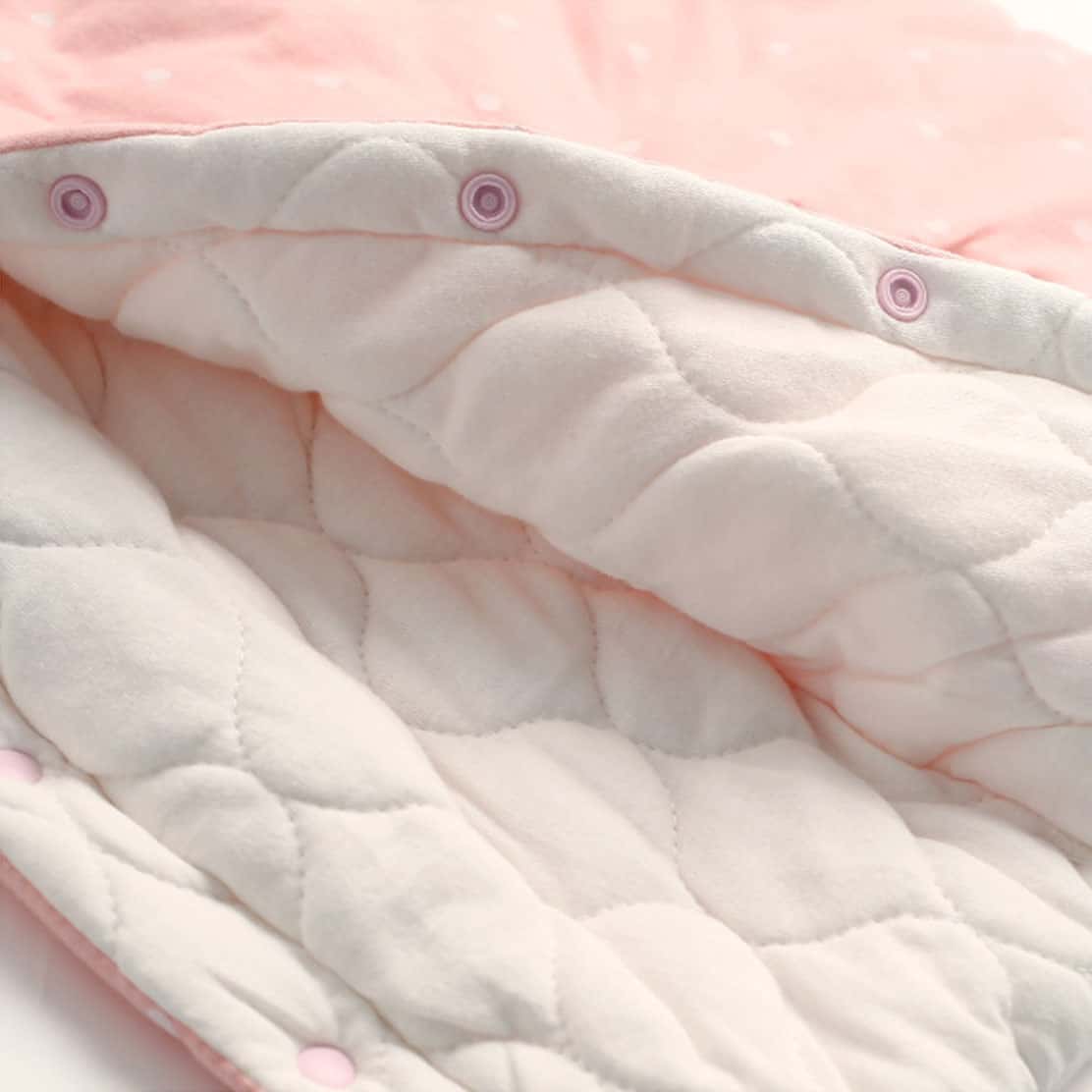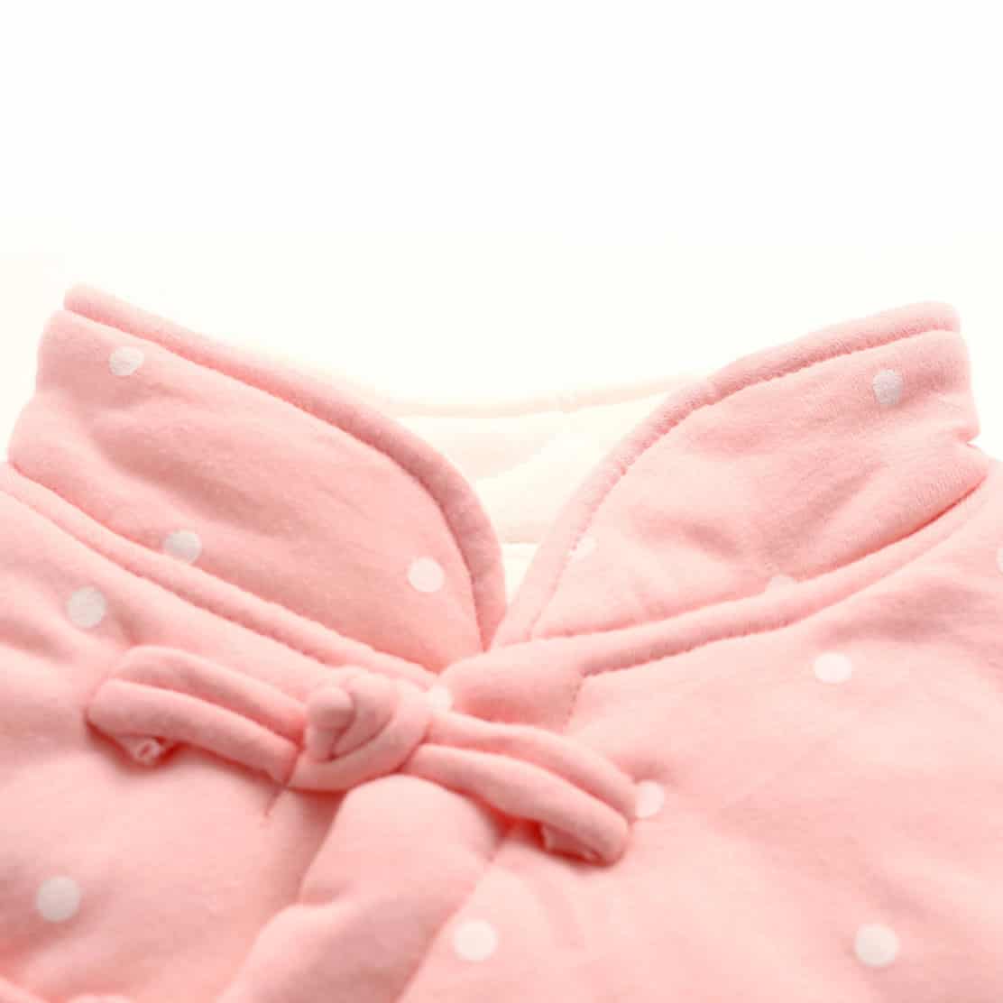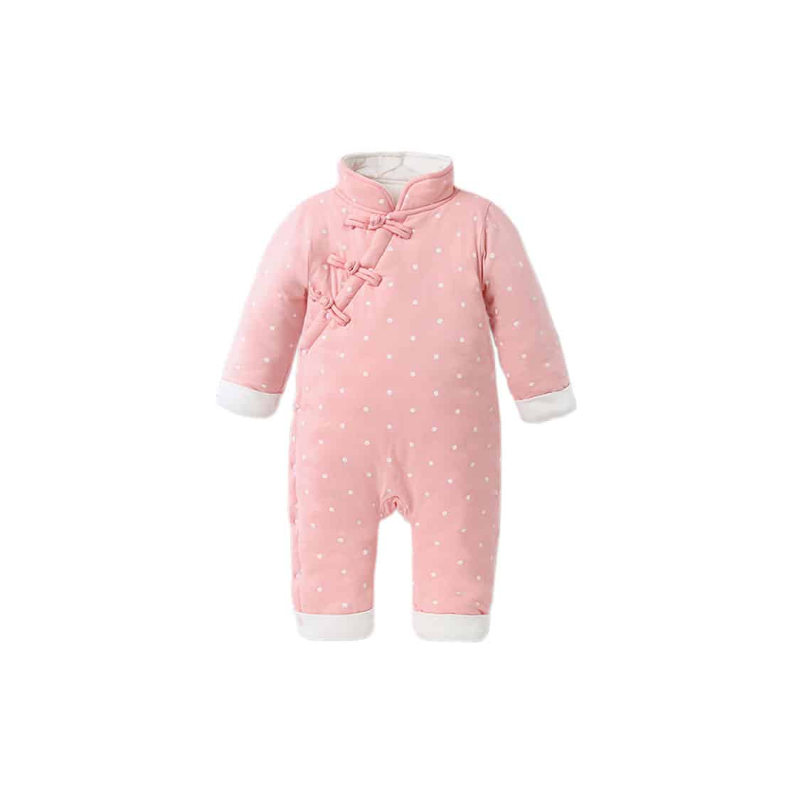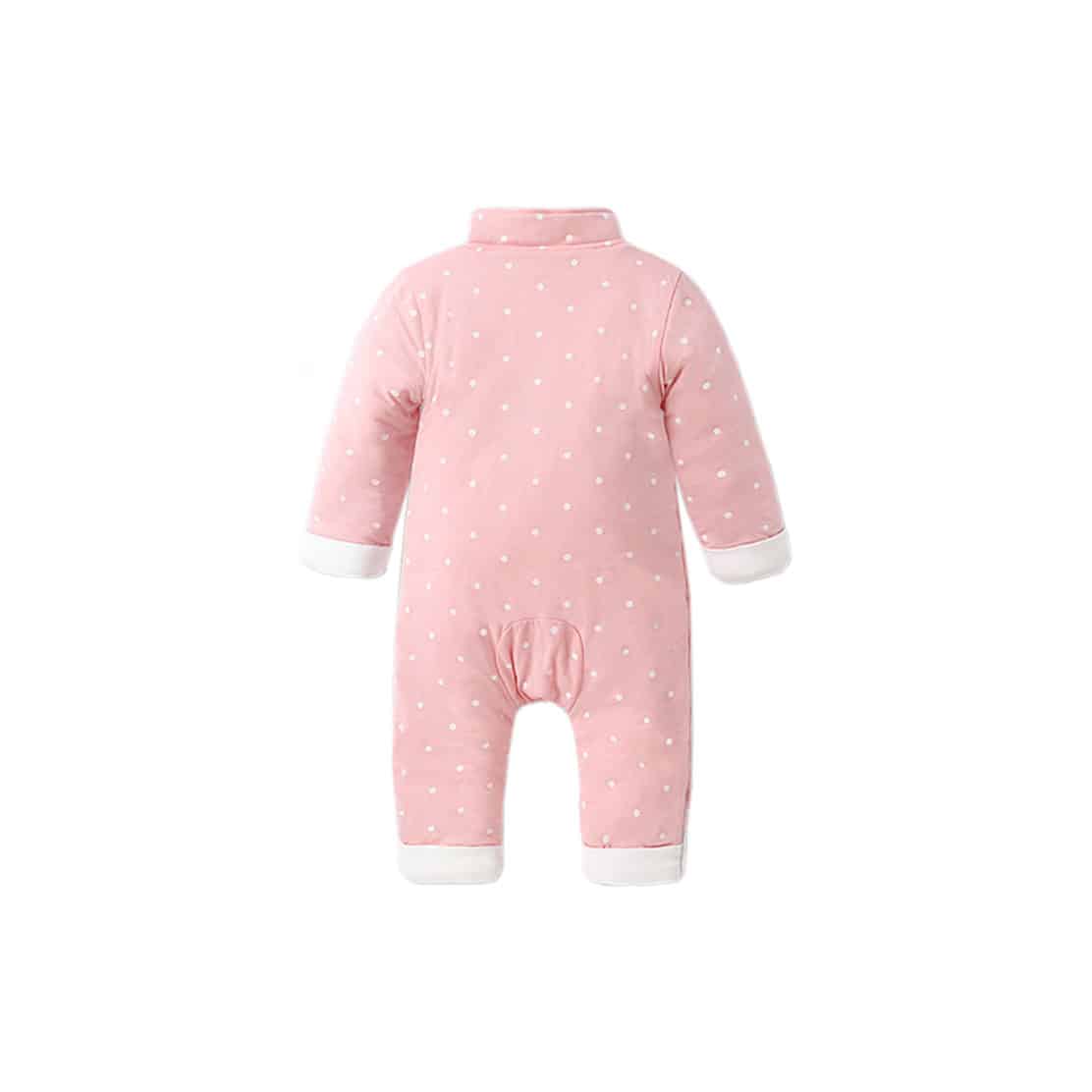 粉色波點花鈕夾棉嬰兒連身衣