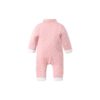 粉色波點花鈕夾棉嬰兒連身衣